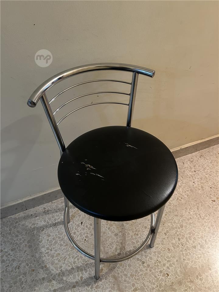 4 kitchen / bar stools at €25 each with a chrome frame and black rexene seats. Upholstery needs redoing. Other than that in good condition.