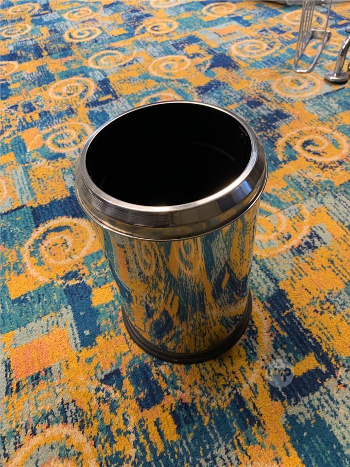 Open-top stainless steel waste bin with inner liner. Suitable for hotel rooms, offices, corridors, or commercial spaces. Simple, durable, and easy to maintain.