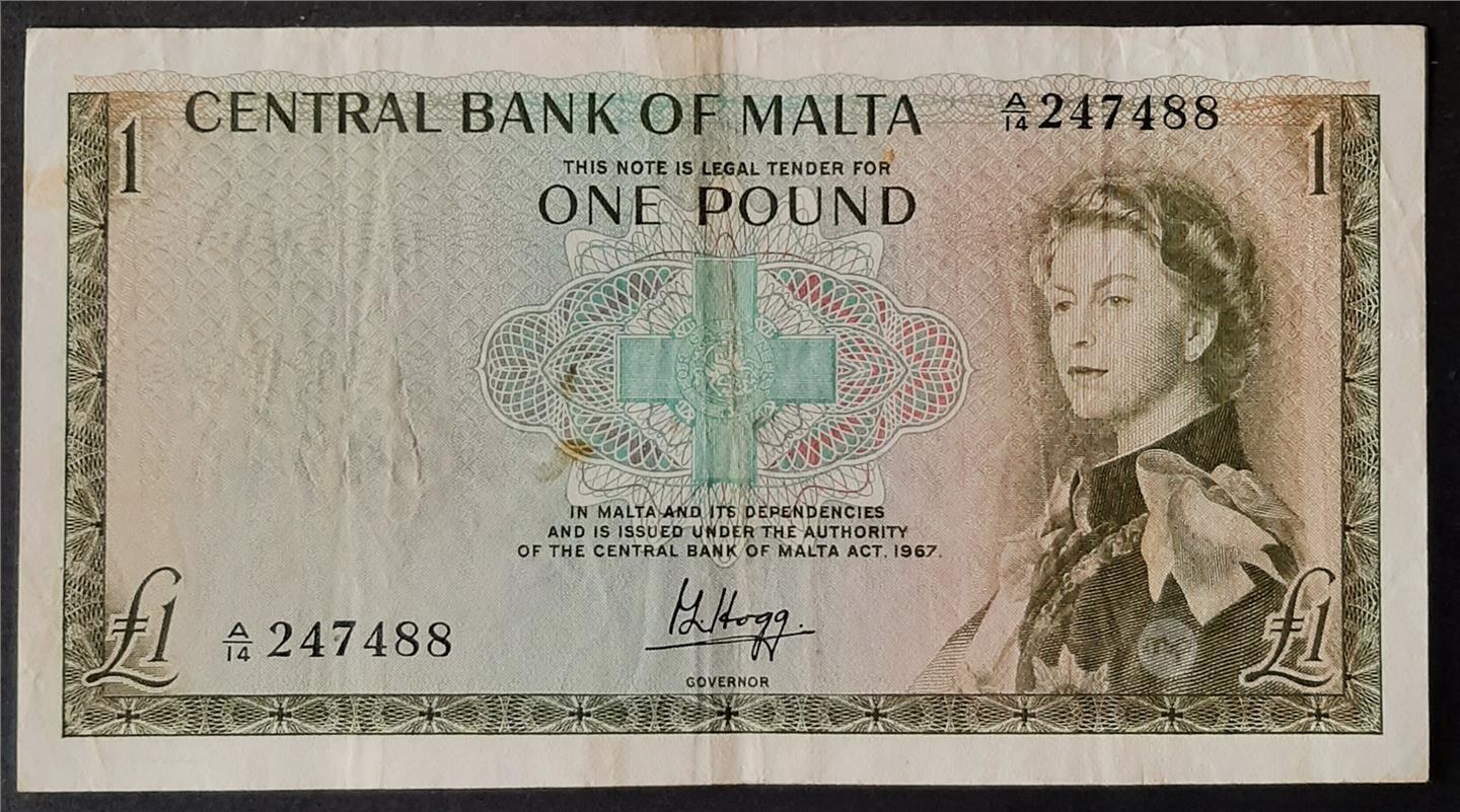 CENTRAL BANK OF MALTA - ELIZABETH II ONE POUND BANKNOTE signed HOGG