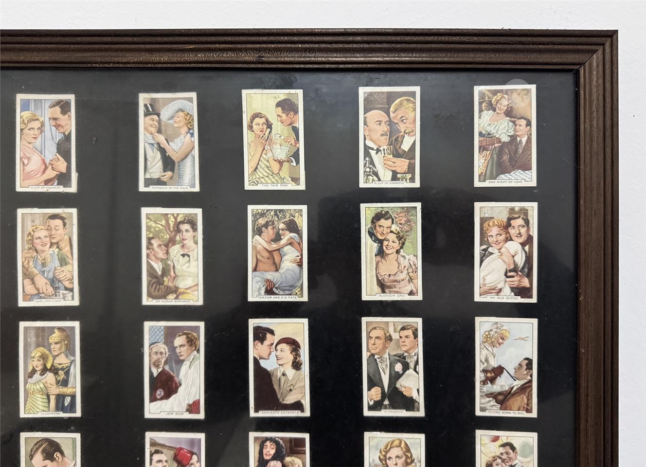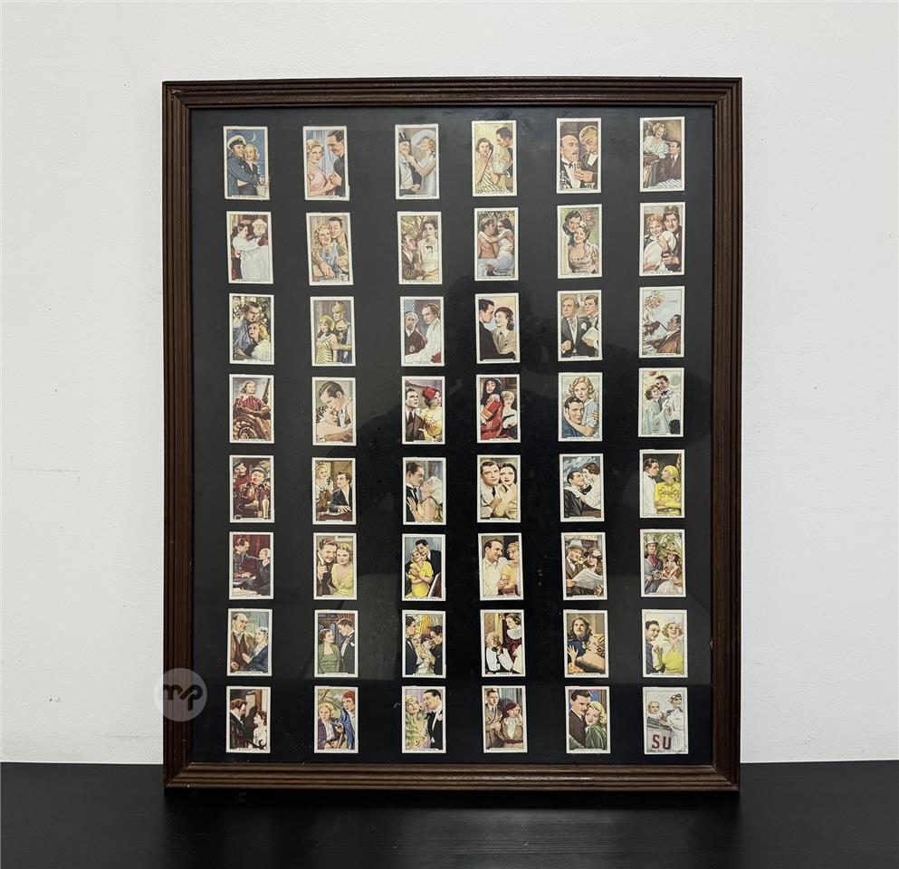 Framed collection of old cigarette cards (Hollywood Films)
