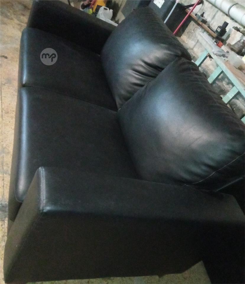 Two Black 2 seater sofas high quality imitation leather almost as new with wooden feet, one is 200 and another slightly larger 250 eu or nearest offer bought for 500 EU each