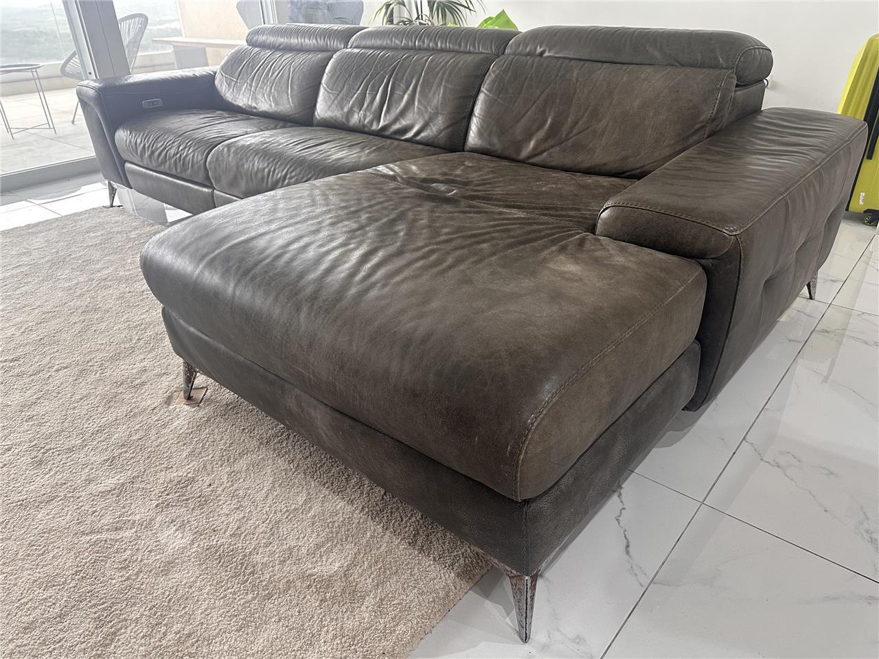 4 seater modular recliner leather sofa. Additional 2 seats that extend sofa to 6-7 seater.