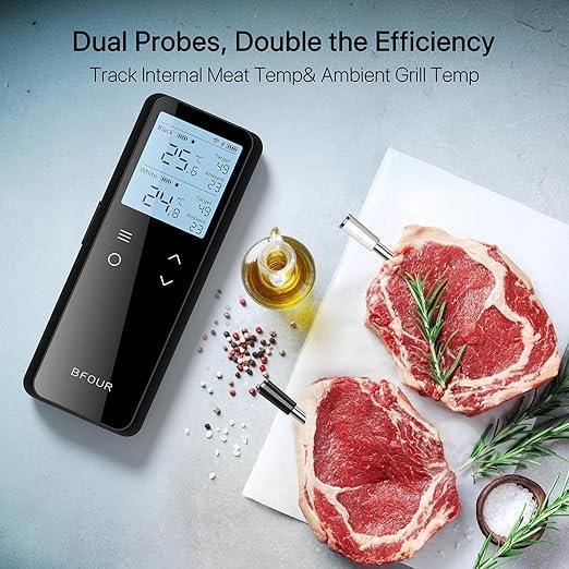 BFOUR Smart WiFi Bluetooth Meat Thermometer – IP67 Waterproof with 2 Probes, Dual Temperature Monitoring for Oven, BBQ & Smoker