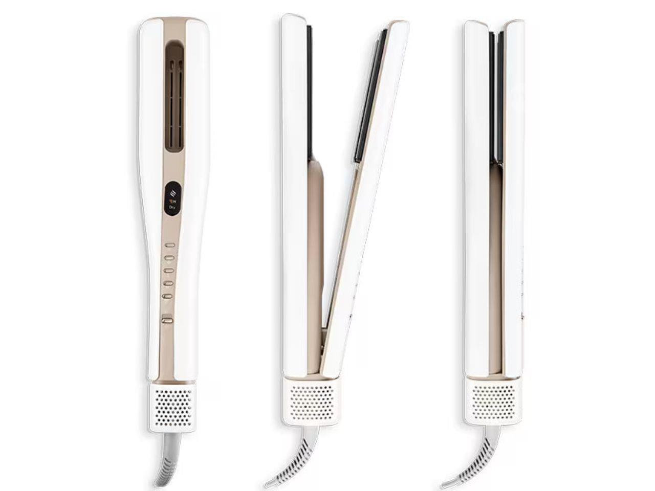 The CHI LAVA AirGlide – Pearl is a multi-purpose styling tool that blends the function of a flat iron with that of a hair dryer. It is designed to let you dry and style at the same time, using a stream of heated air that passes through vents built into the plates.