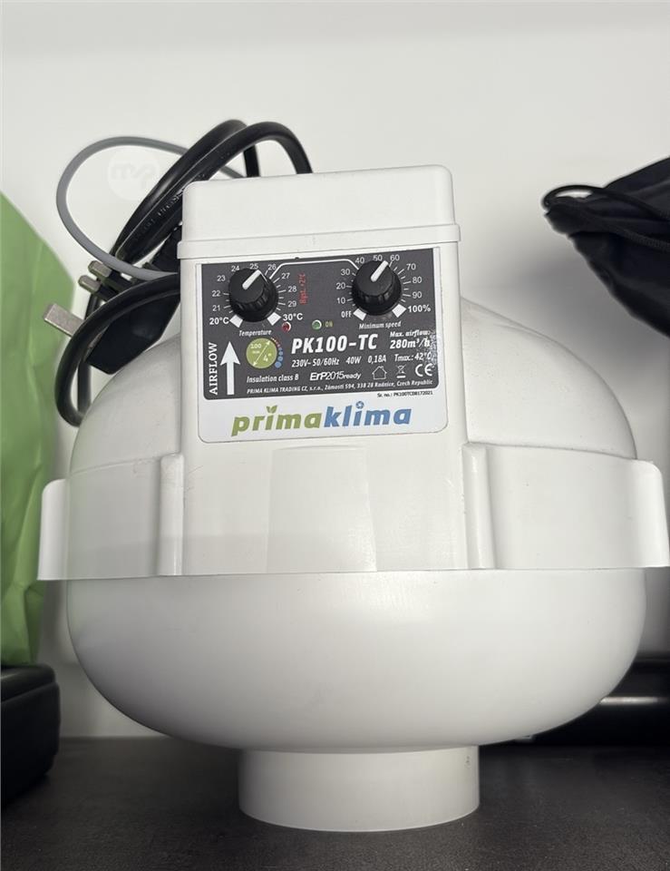Lightly used PRIMAKLIMA PK100-TC temperature-controlled extractor/fan system. Only six months of use, stored and operated properly, and still in excellent shape. Ideal for grow tents. Great choice if you’re looking for quality without paying full retail.