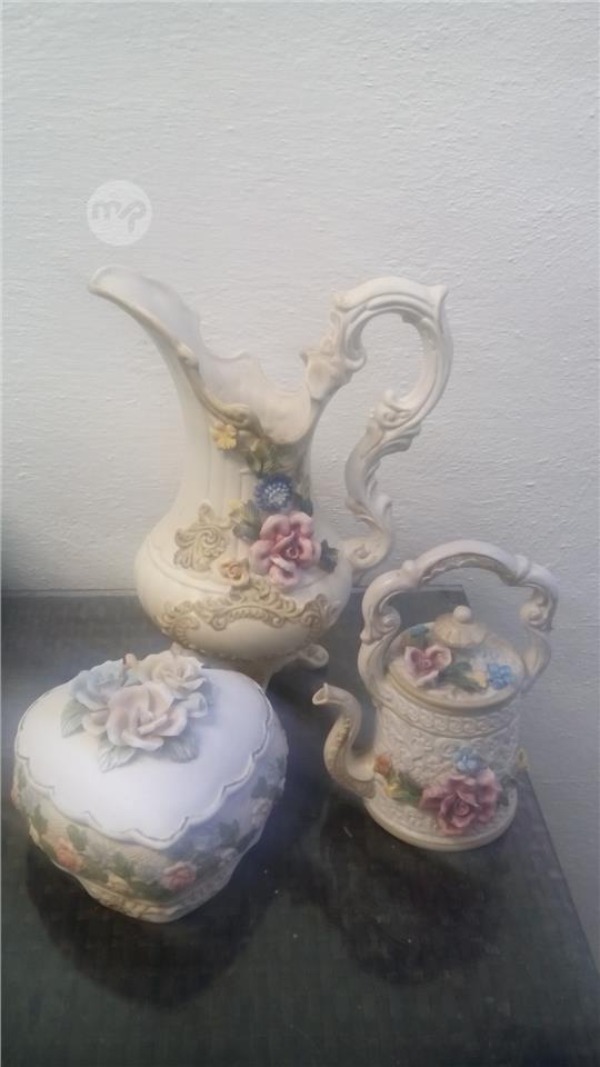 CERAMIC VASE & HEART BOWLO & TEA POT