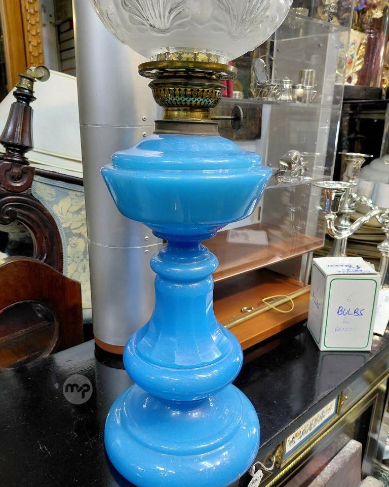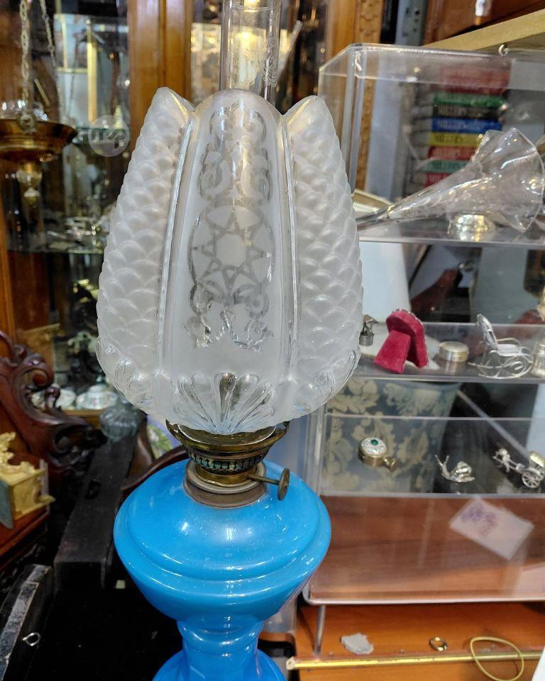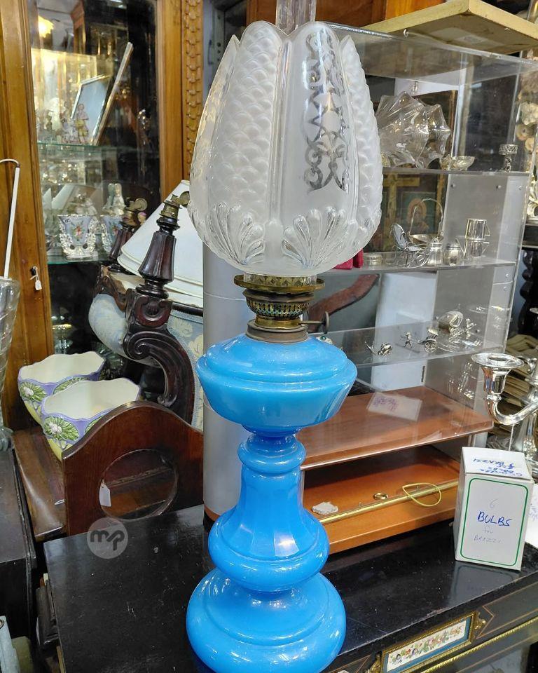 A beautiful, in perfect condition Genuine Antique blue ,blow glass Paraffin la