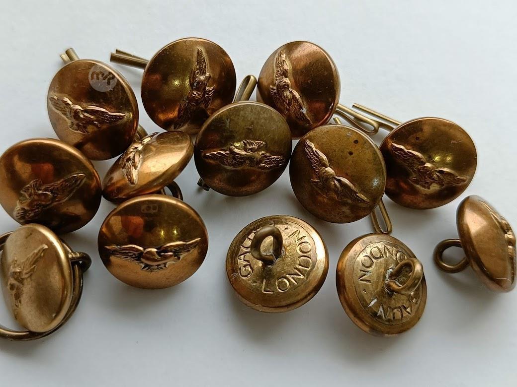 (No.3) 13 small RAF Eagle brass 17mm Gaunt buttons (5 euros each)