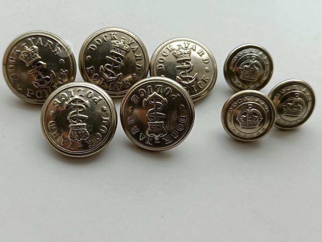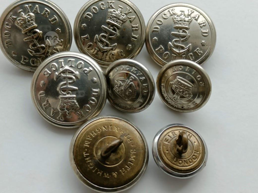 Vintage Dockyard Police brass buttons ( 5 x 25mm / 3 x 17mm) 30 euros all