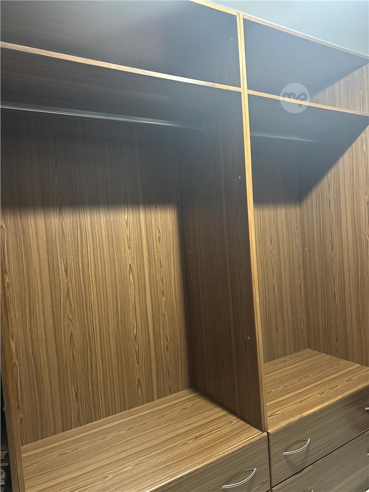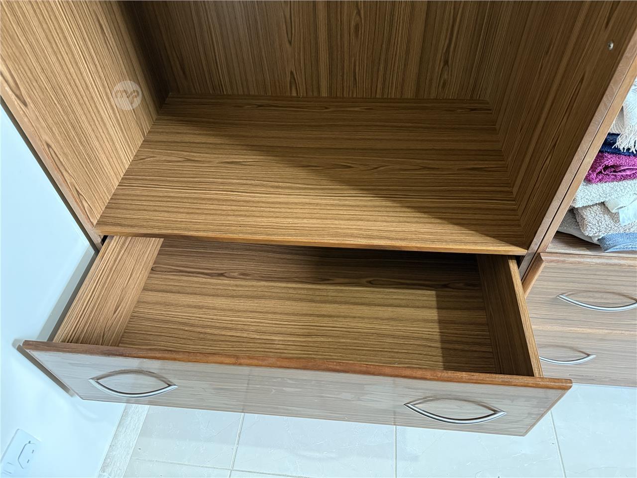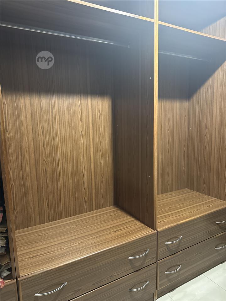 Brown wardrobe cabinets having 2 spacious drawers with silver stainless steel handles. Suitable for a walk in wardrobe or free standing for apartments