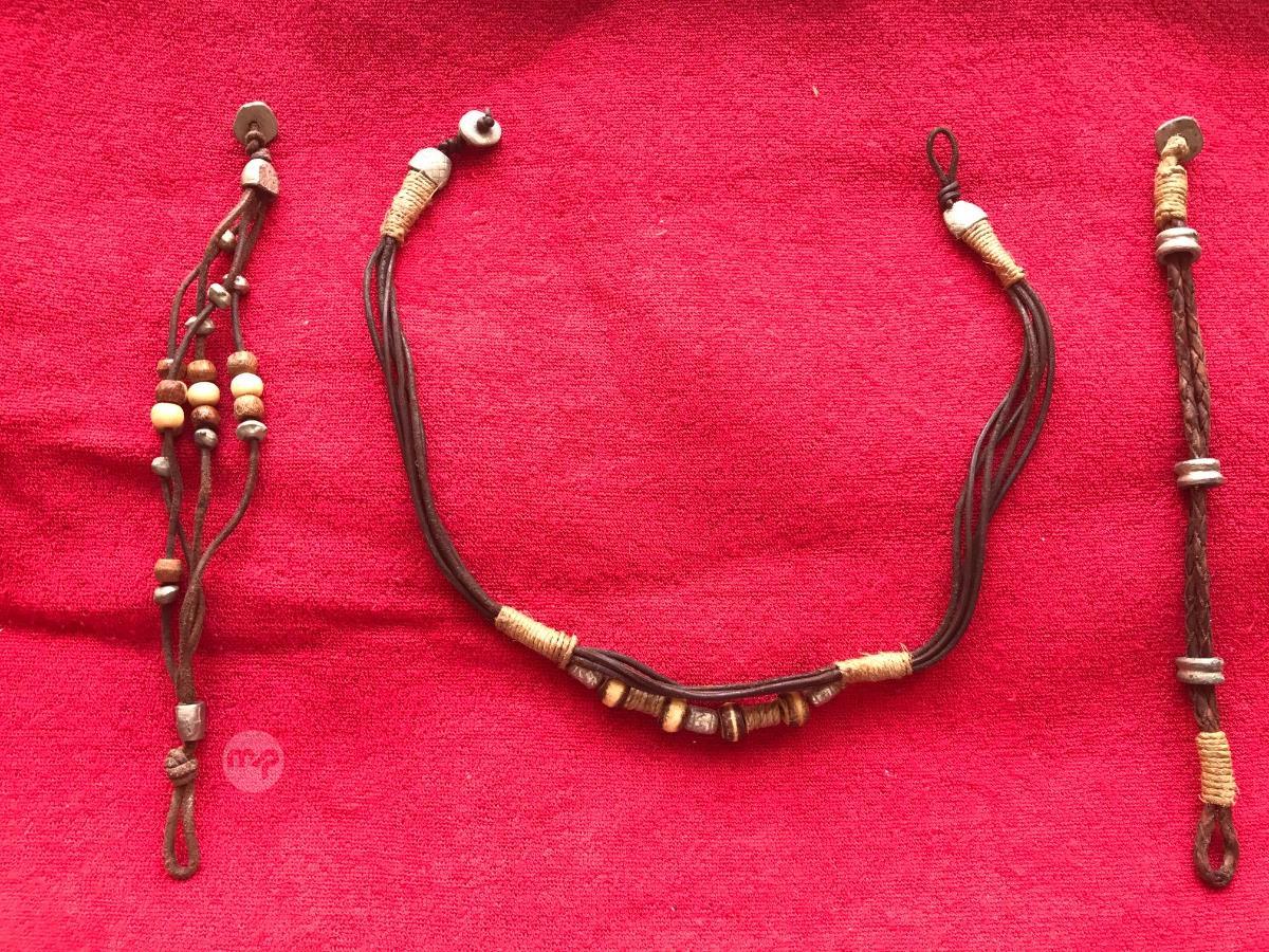 Tribal necklace and bracelet in leather,
