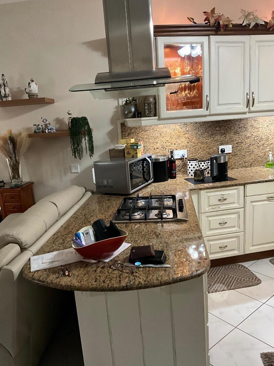 Complete small kitchen with appliances (not fridge/freezer) available. Suit a small apartment. Available free but buyer must dismantle and take away. “ L “ shape with small isle. Length 3.68 m x depth 61cms x 2.40 m height.