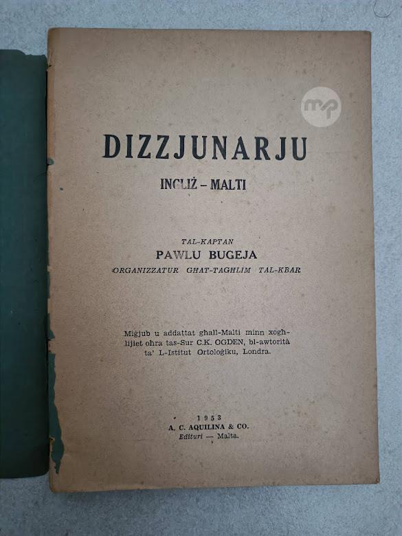 1953 dizzjunarju Ingliz-Malti tal-Kaptan Pawlu Bugeja
