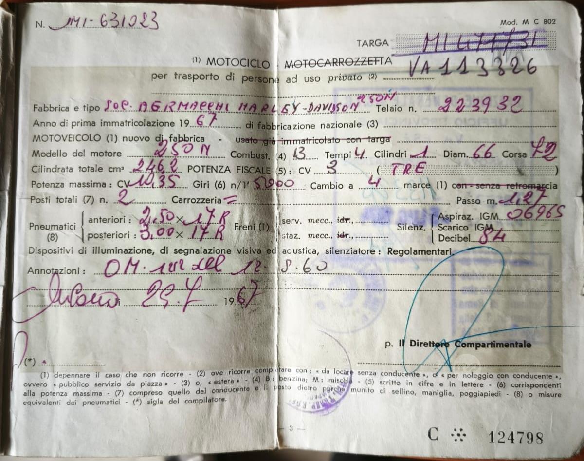 1960 AERMACCHI ALA VERDE, paired with a legendary HARLEY DAVIDSON engine, 5-speed transmission