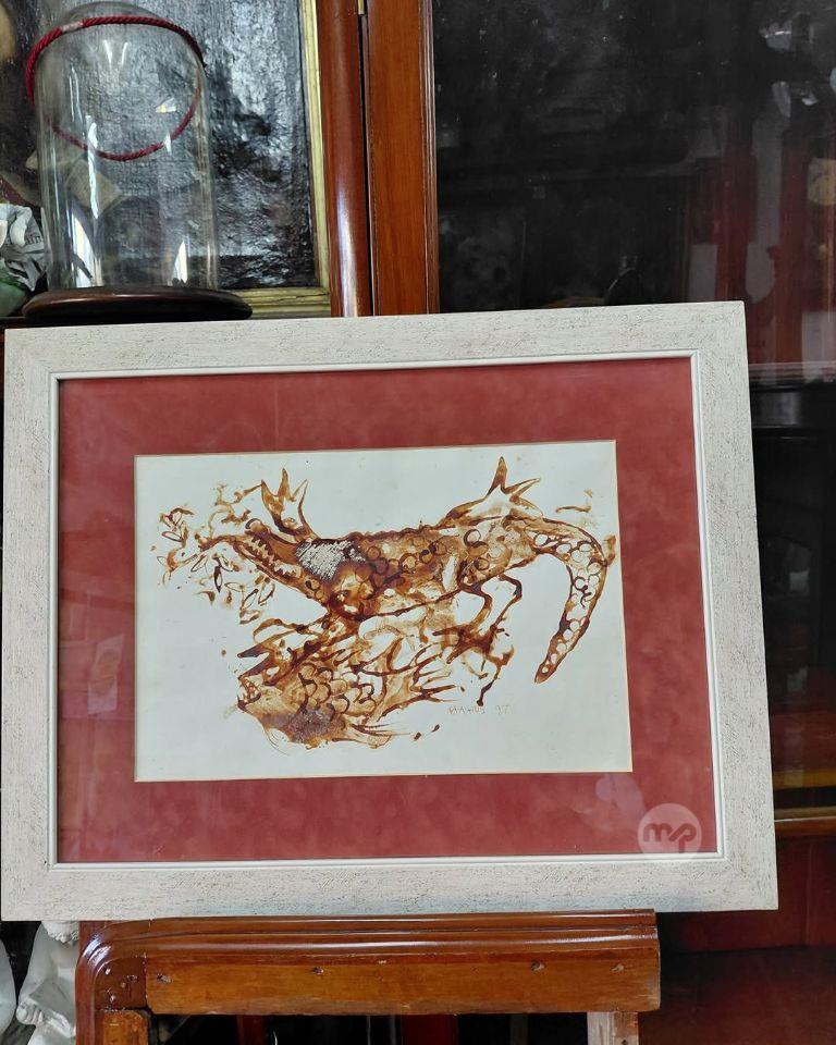 An Abstract painting work (Sanguine on paper) By Maltese Renomate ARTIST Anton