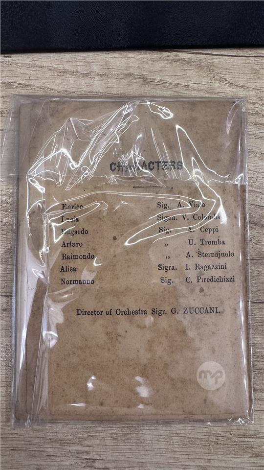 This is a vintage libretto for the opera Lucia di Lammermoor by Gaetano Donizetti, as performed at the Royal Theatre in Malta.