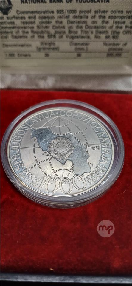 1980 Yugoslavia 1000 Dinars Josip Broz Tito Silver 925 Proof Coin 26grams