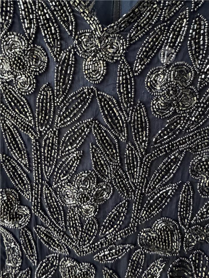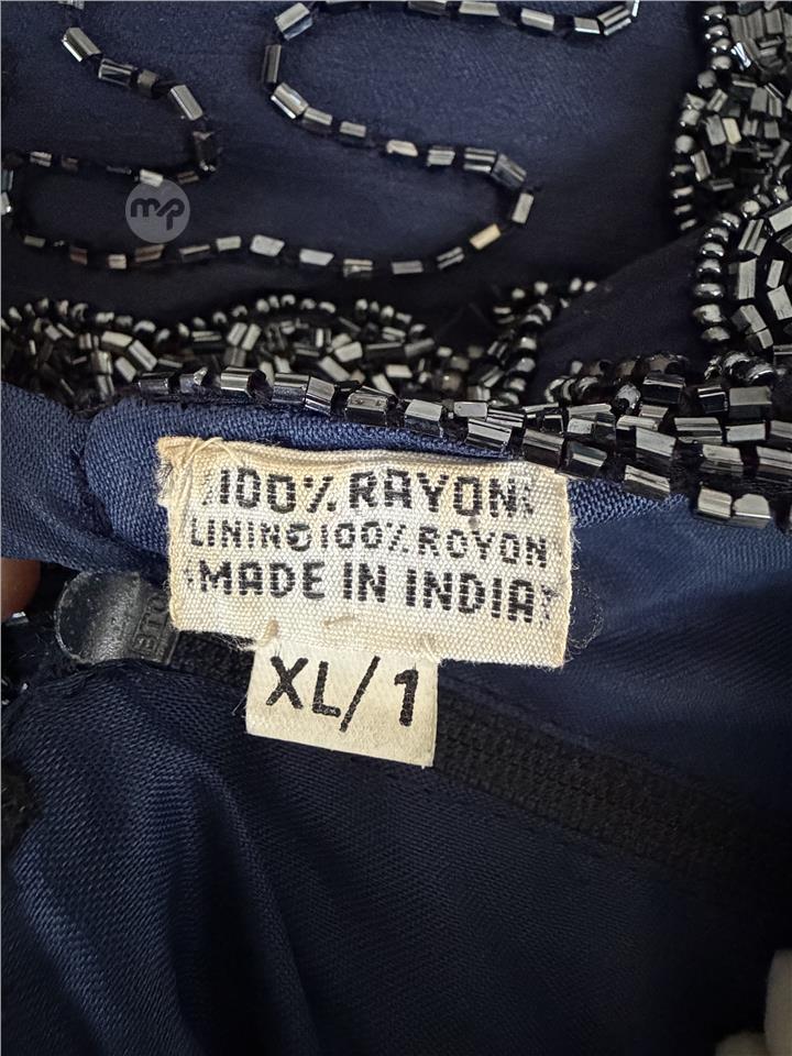 Midnight blue evening dress. 100% Rayon. Beaded (handmade). Size 14 - 16.