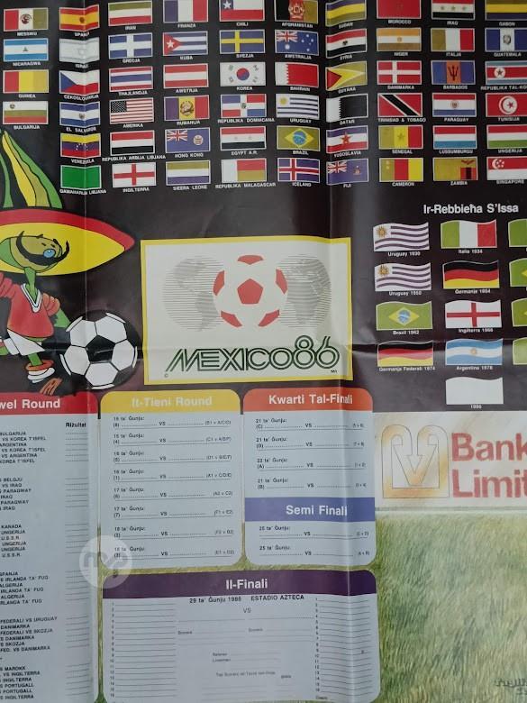BOV World Cup 'MEXICO 86' Team Fixtures and Flag Poster (21"x 28")