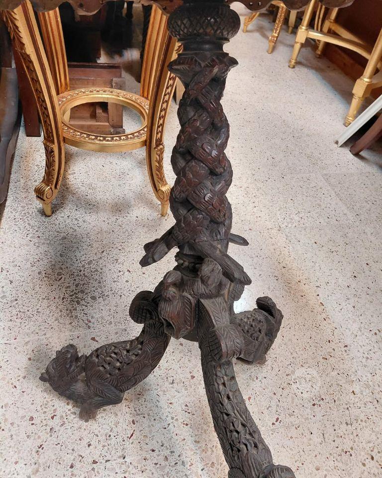 An Anglo -Indian burmese carved hard wood round occasional table Made in the