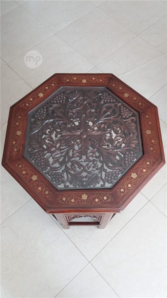 Coffee table in rose wood with sculptures . New
