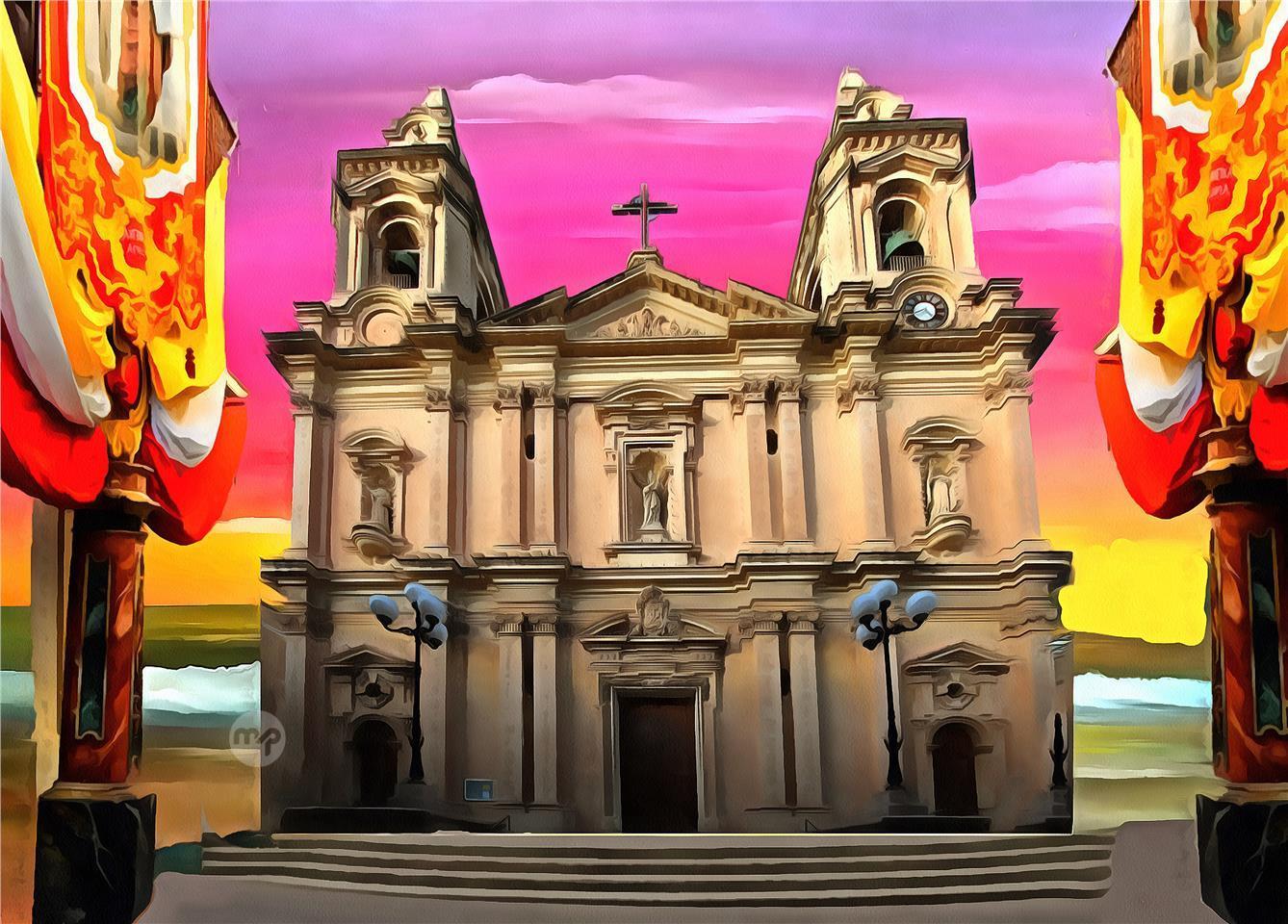 SACRA COURE CHURCH SLIEMA MALTA ---- ORIGINAL HAND PAINTING OIL ON CANVAS 70X50