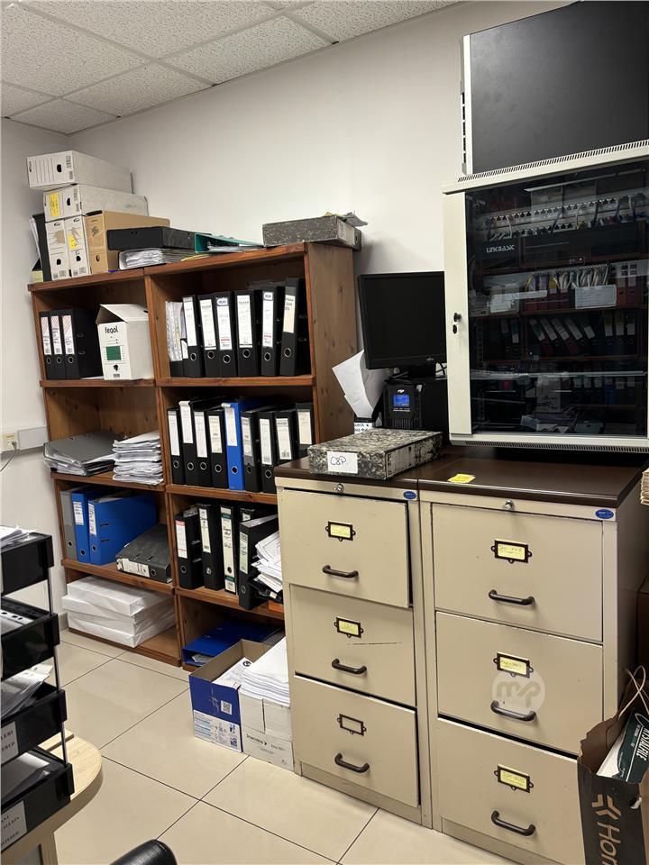 7 wooden open book cases ideal for a library. The other office furniture used as in pic. can be sold separately.