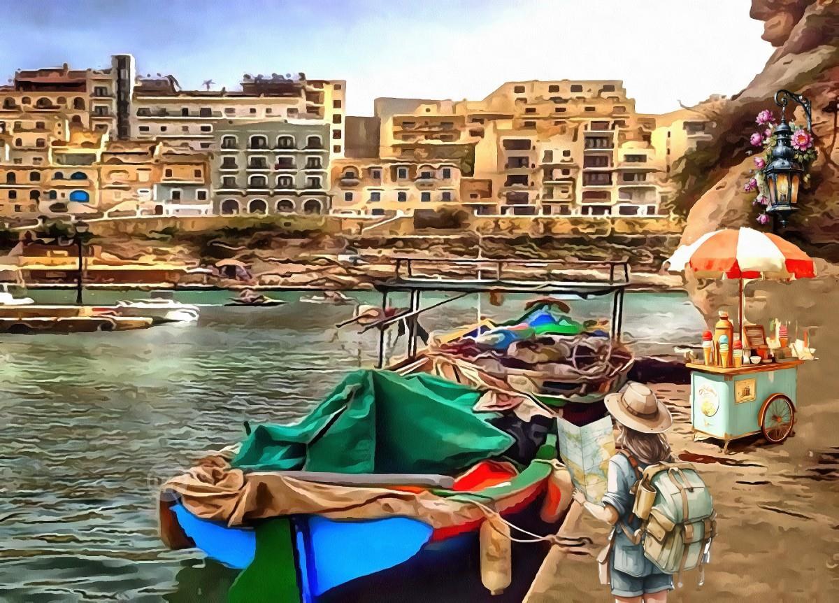 HOLIDAY IN XLENDI GOZO --- ORIGINAL HAND PAINTING OIL ON CANVAS 70X50