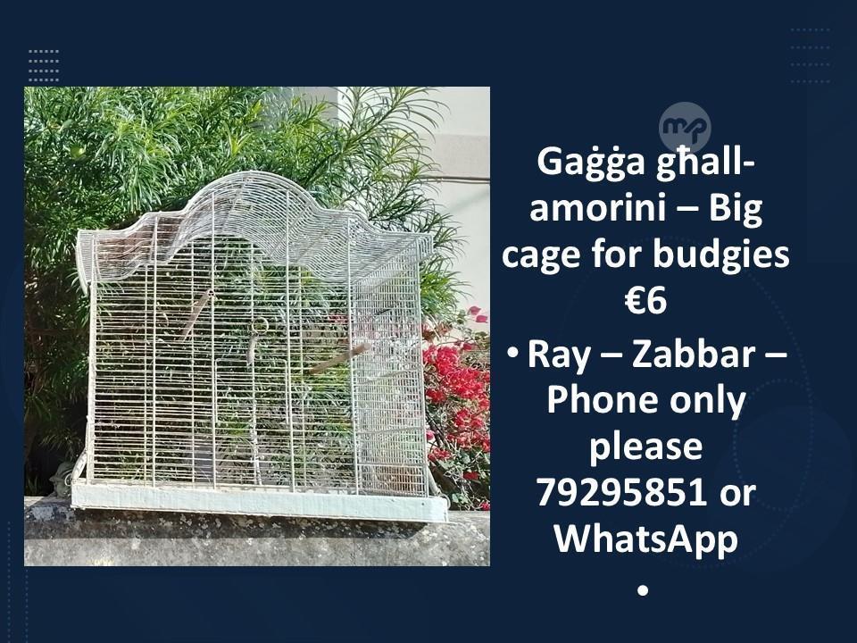 Gaġġa kbira għall-amorini – Big cage for budgies€6