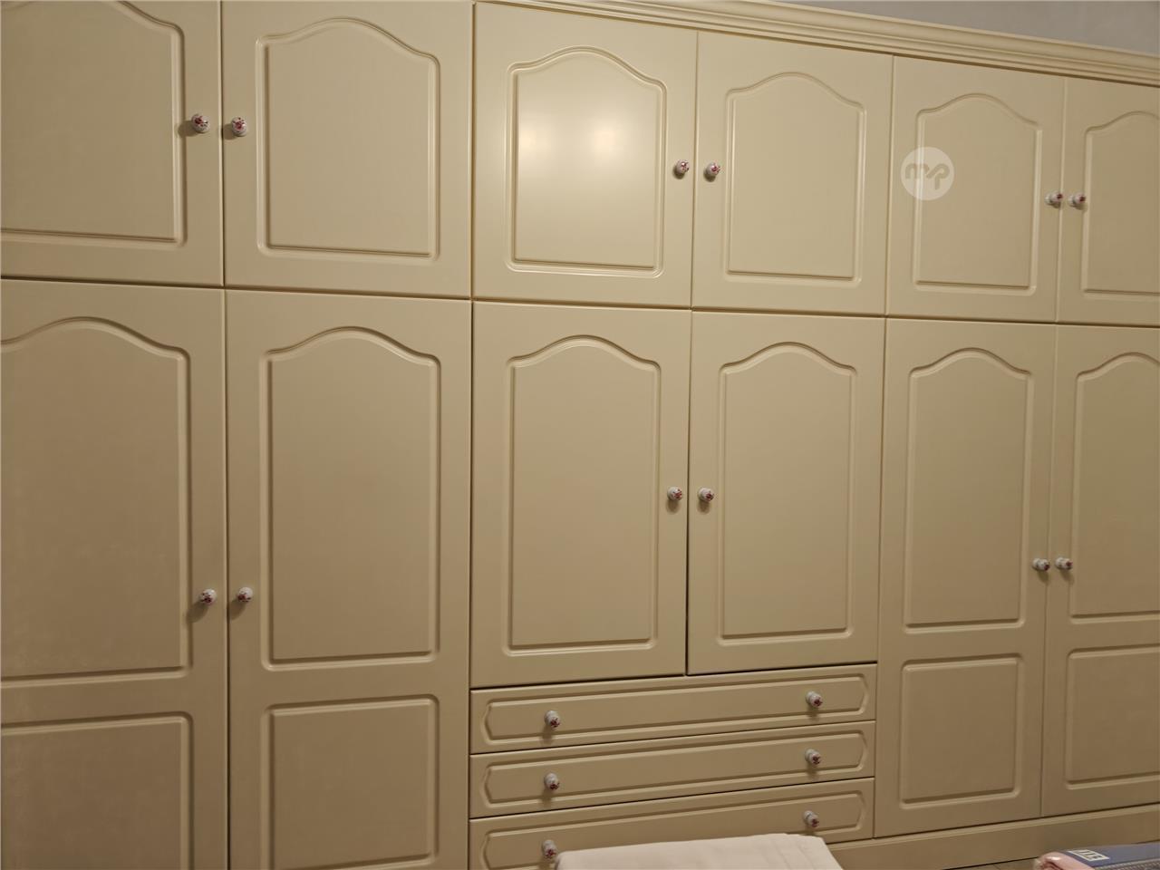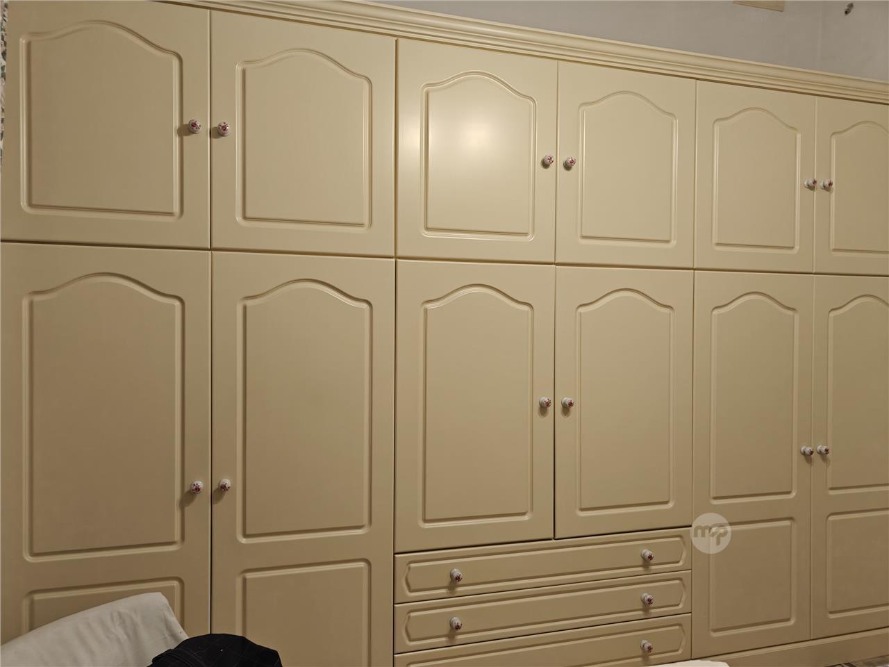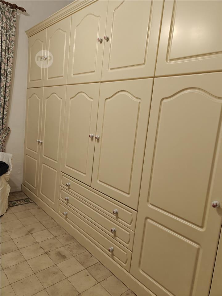 Solid wood sprayed Double bedroom complete with wardrobe, double bed with headboard (minus mattress) 2 bedside tables. Custom made and well finished in a very good condition