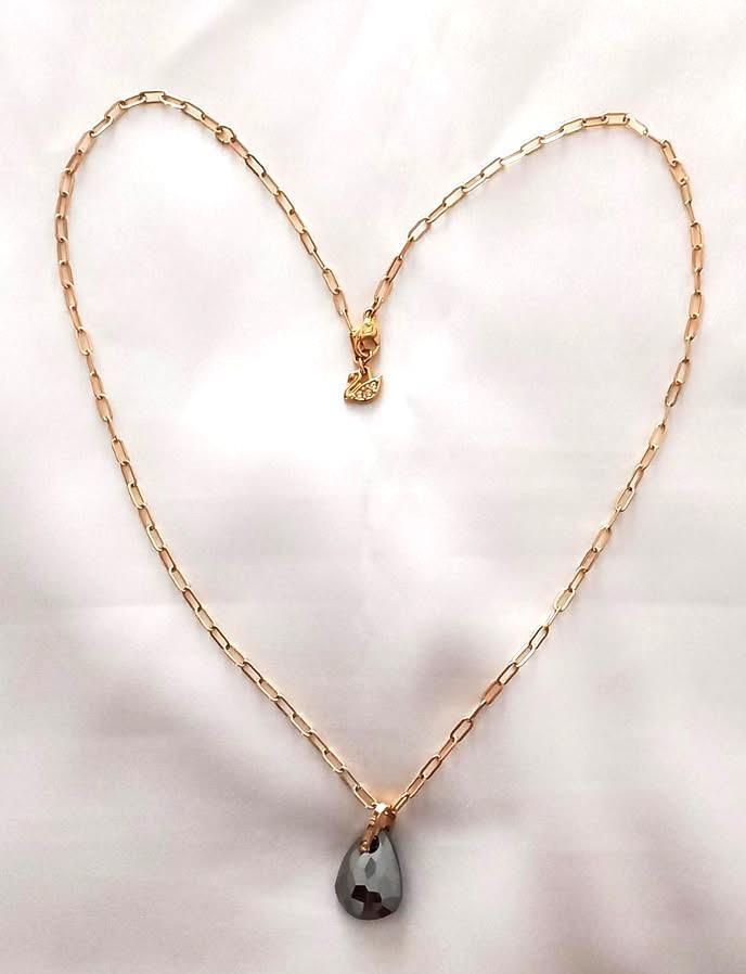 SWAROVSKI NECKLACE PEAR SHAPED GREY CRYSTAL PENDANT