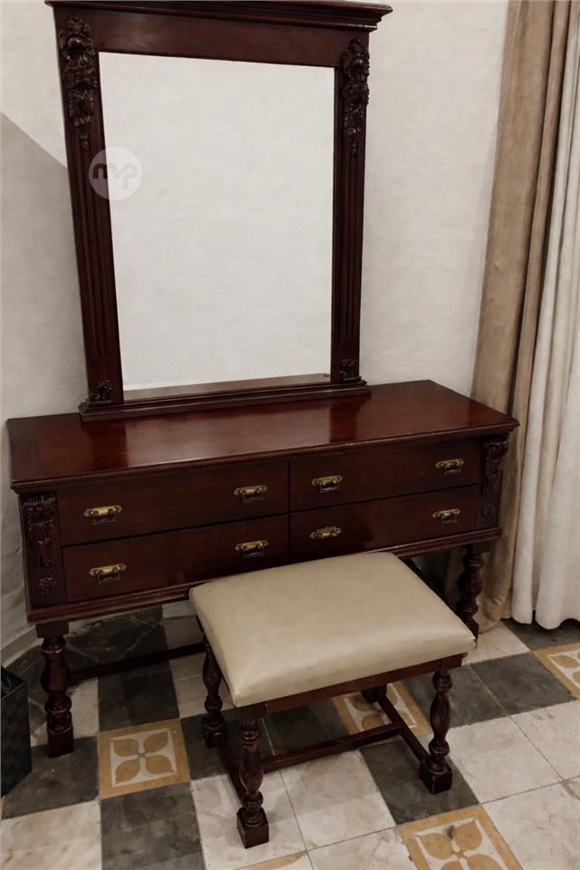 Classic style bedroom in very good condition for sale. Comprises of wardrobe (163X60X192), chest of drawers (116X48X 90), vanity table (125X40X180), double bed including mattress, two stand alone commodes and additional mirror (115X86). All dismantling and delivery costs to be borne by the buyer. The bedroom will be available towards the end of March.