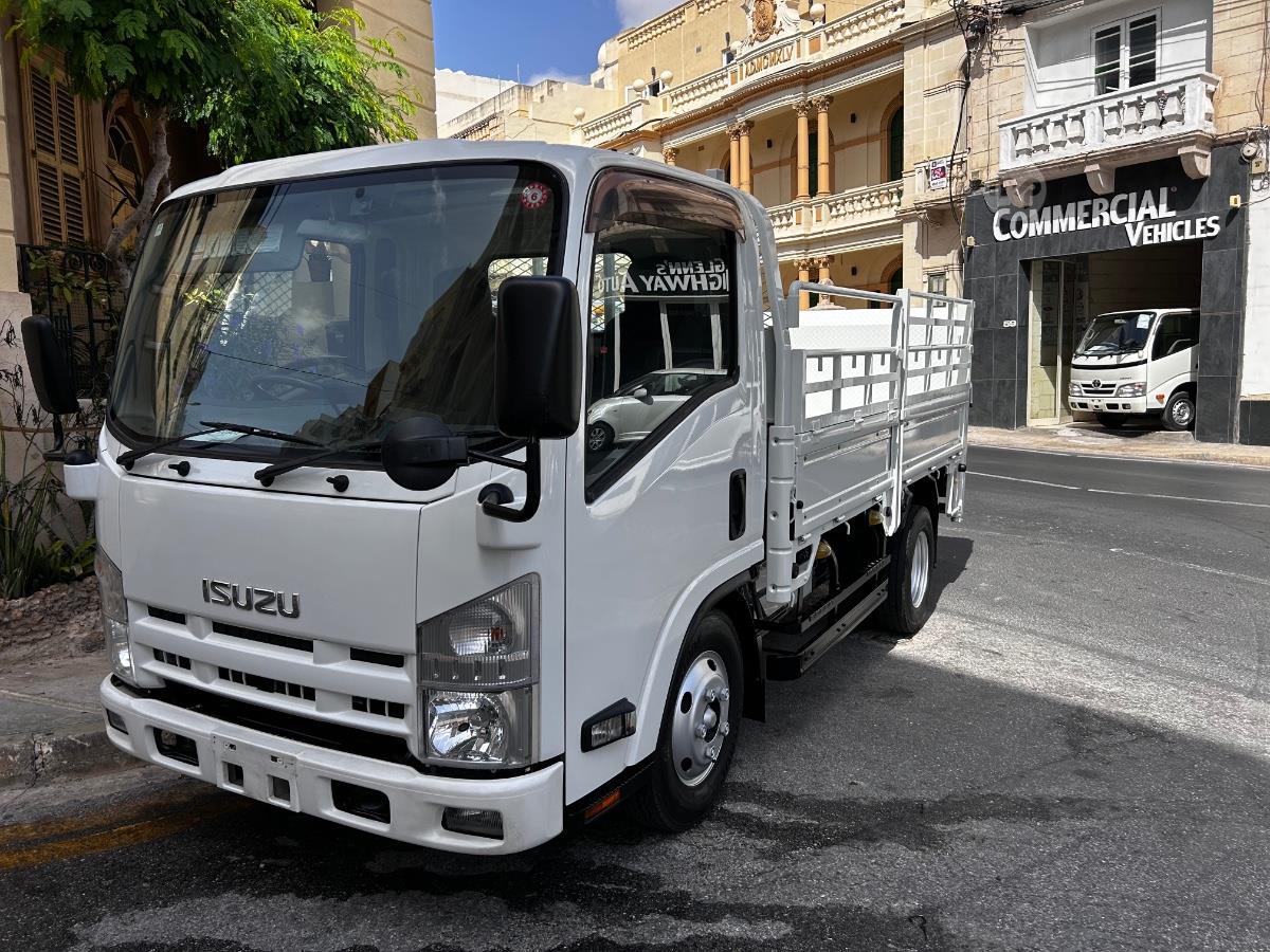 New stock Isuzu elf 2014/15 model 3 ton pay load light-duty truck, specifically configured with a flatbed drop side box and a rear-mounted tail lift/loader. Eligible for micro invest with only 100k on the clock condition top from us @ Glenn’s Highway Auto 79402488/99403474
