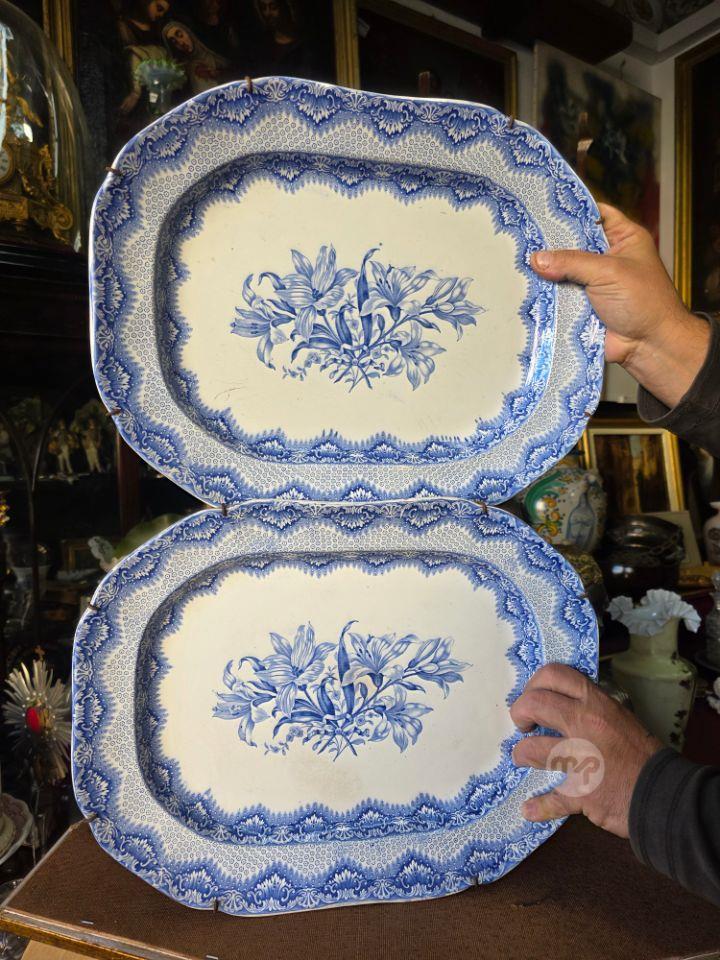 Two Spode blue and white transferware serving platters. Featuring a central flo