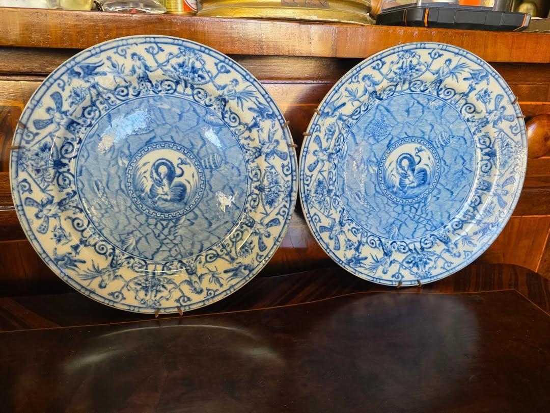 Two Antique Blue and white Maritime Plate Designs, circa 1830, SEA SERPENTS & SHELLS, MARITIME, ANGEL & GRIFFIN BORDERS Price of 70 euros both 99456526