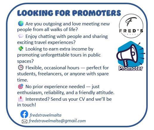 Promoters wanted to work on flexible hours to promote travel tours. Please send cv