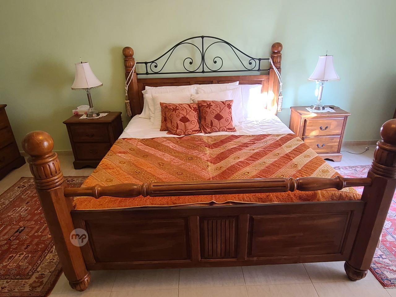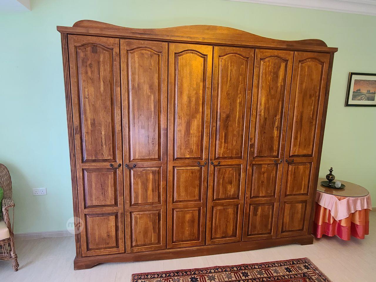 Solid wood American Classic style . Double bed 200cm x 200cm with headboard . Two bedside tables. Dressing table with mirror. Chest of drawers. 6 door wardrobe. Lovely condition.
