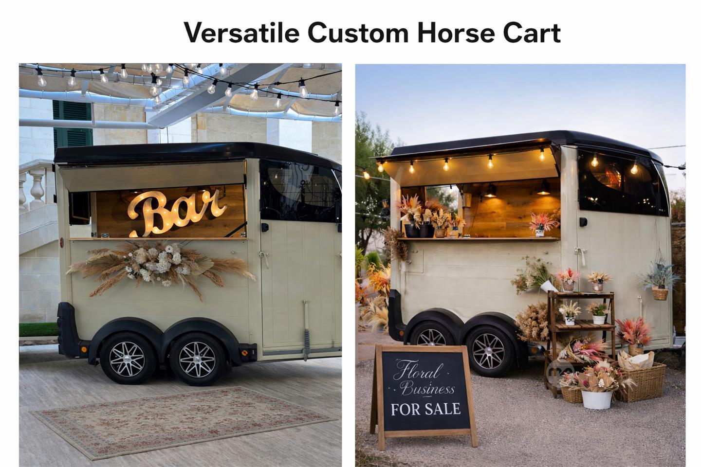 Beautifully customised horse cart, designed as a mobile business solution with strong visual impact and flexibility. A real eye-catcher and an ideal investment for anyone in the events, wedding, or pop-up space.