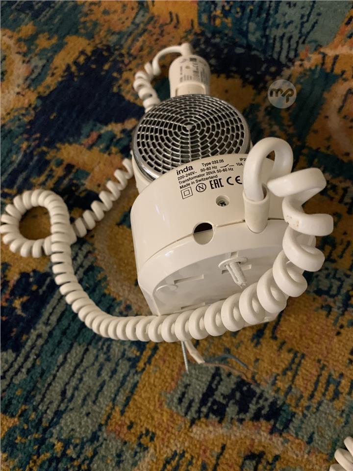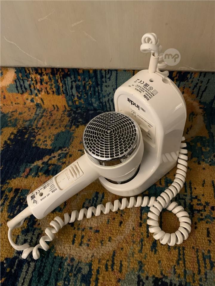 Professional wall-mounted hair dryer, previously used in a hotel environment.