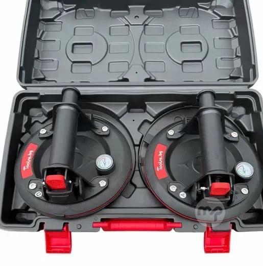 Set of 2 vacuum suction cups with pressure gauge.