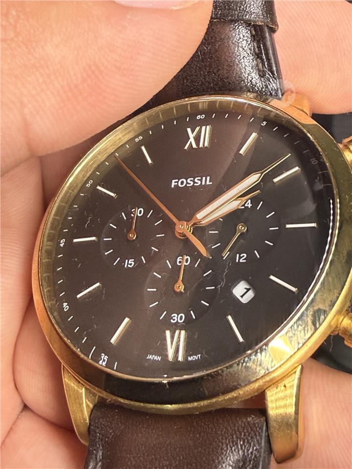 Fossil watch 5 atm waterproof chronograph, real leather strap,