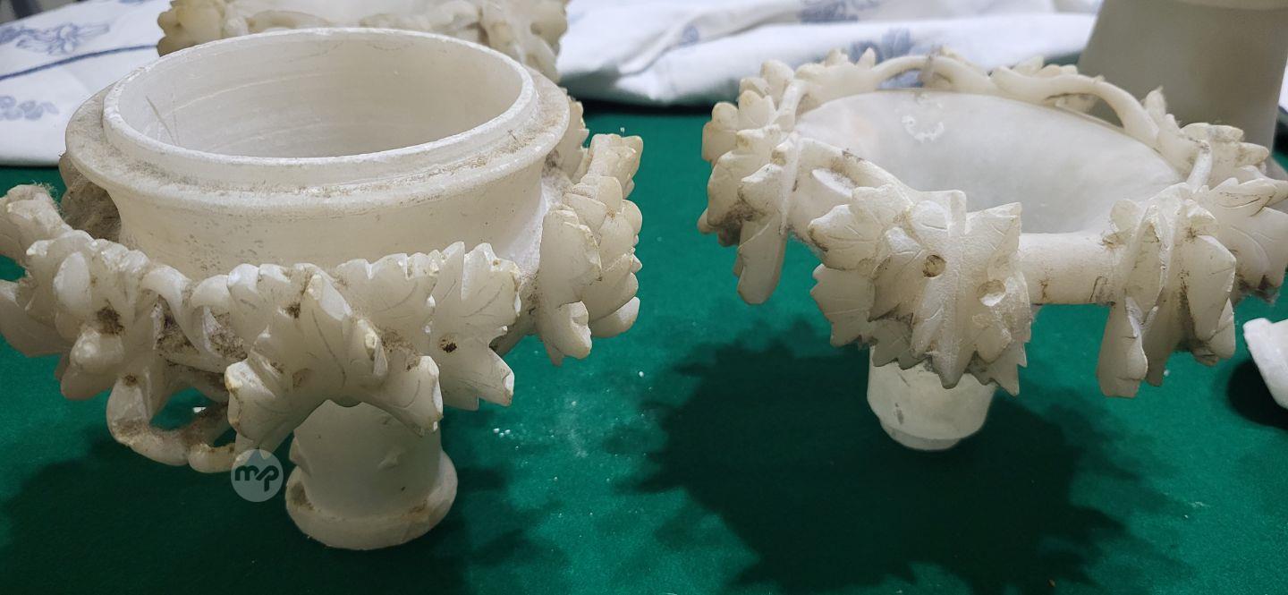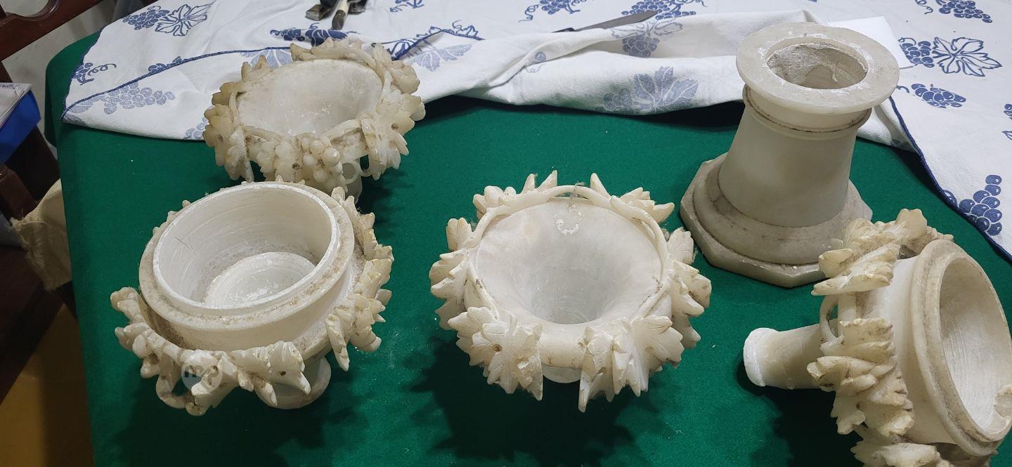 These arwlw parts of a vintage or antique carved alabaster pedestal or stand, Neoclassical in style. price is for the lot, to be dold as.