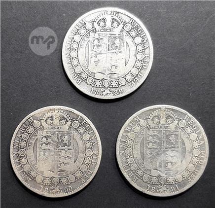 3 QUEEN VICTORIA JUBILEE HEAD STERLING SILVER (.925) HALF CROWNS dated 1889, 1890 and 1891