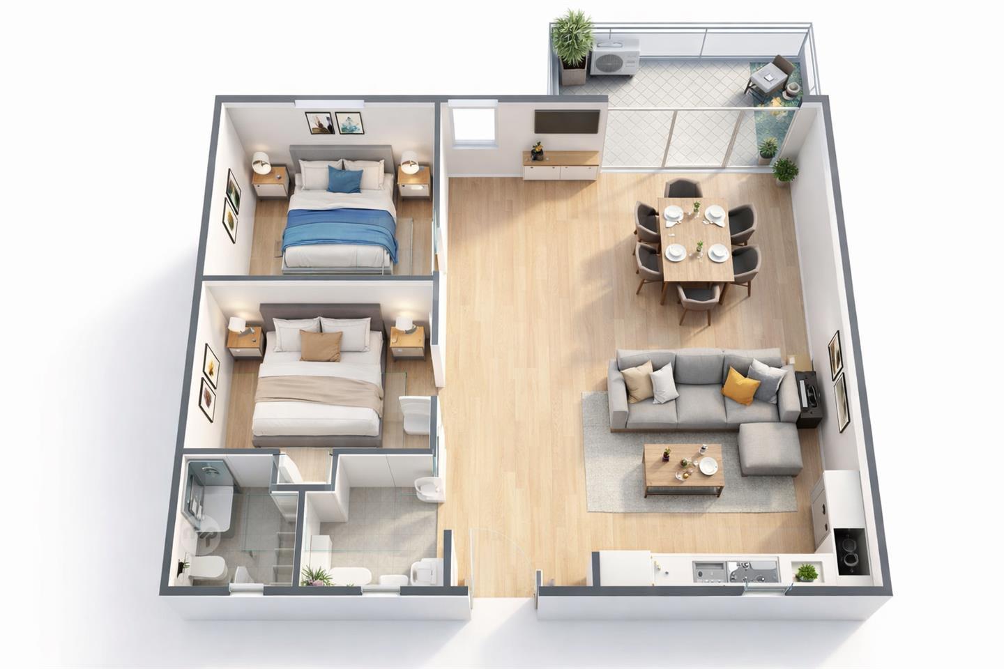 The property consists of a large open-plan kitchen / living / dining area leading to a front balcony, ideal for everyday living and entertaining.