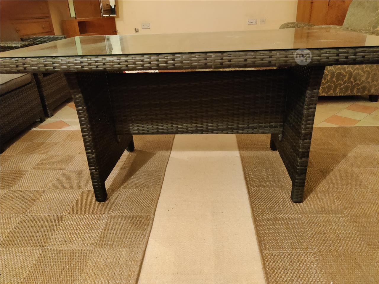 Stylish rattan table with thick glass top, bought last summer from the Atrium and barely used.
