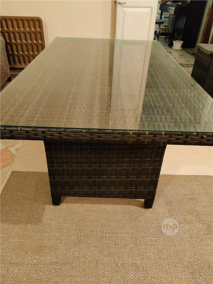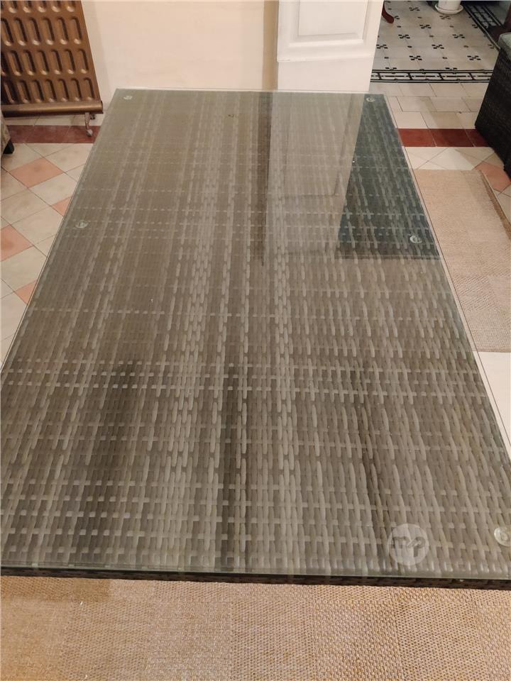 Rattan table with glass top