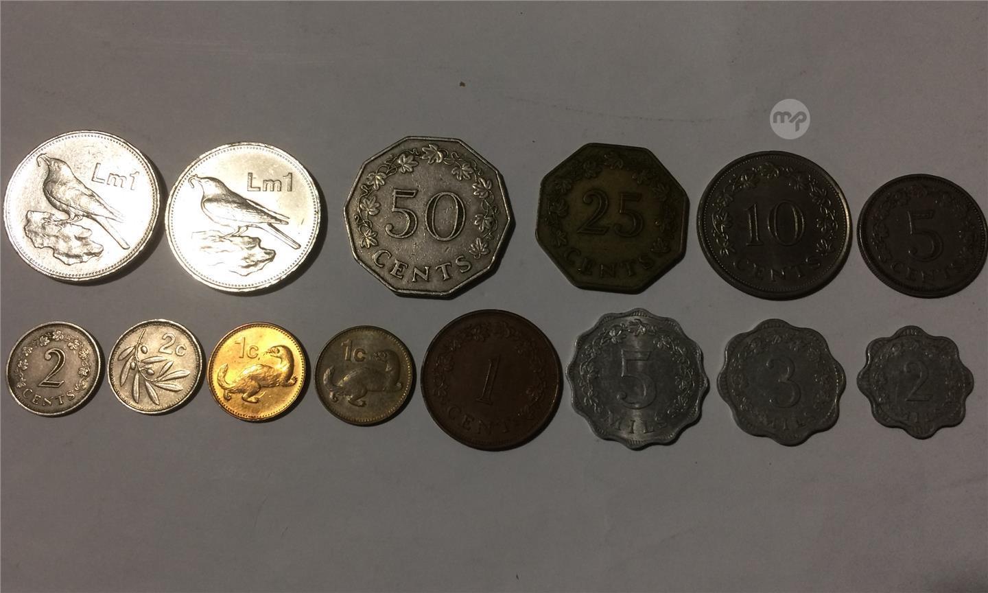 Set of Malta decimal currency coins