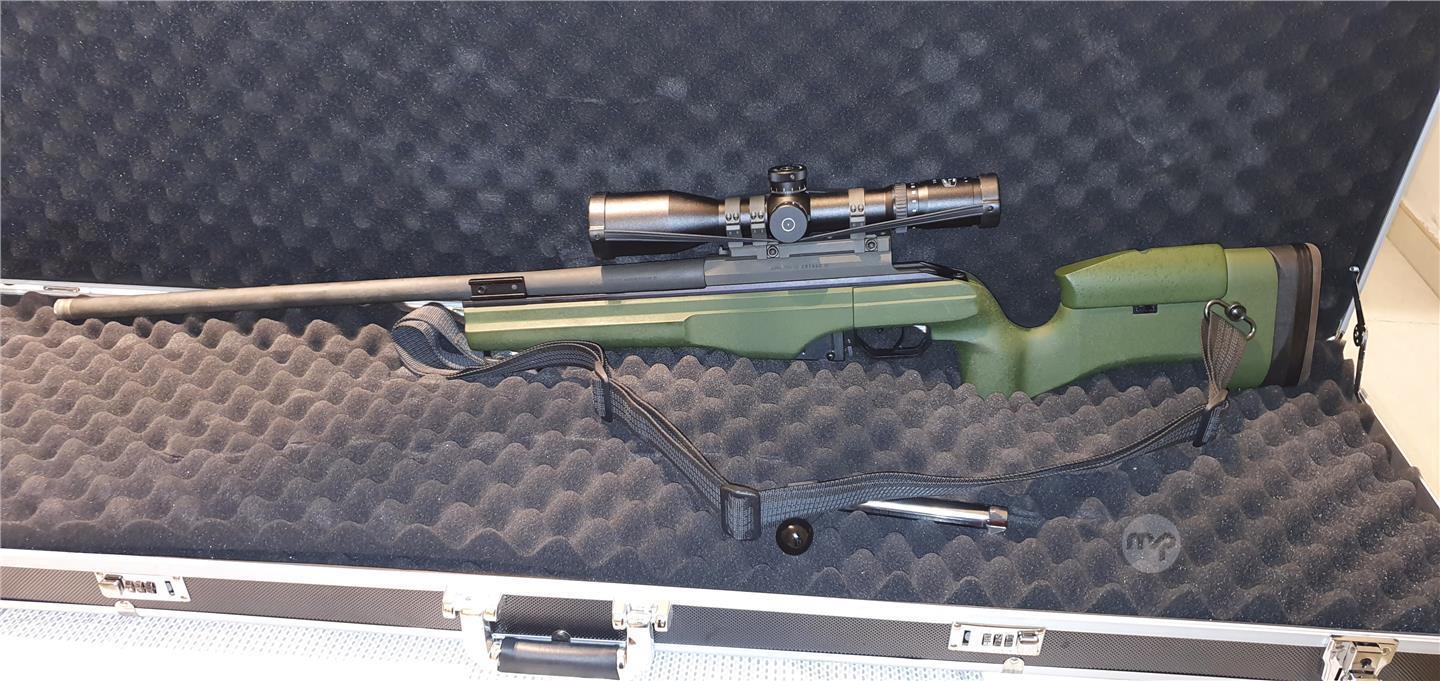 The Schmidt & Bender 3-12x50 offers superb optical clarity and precise, repeatable adjustments. It is professionally mounted and perfectly matched to the rifle. Included is the aluminium case with foam inlay, sling and bipod, making this a turnkey package for the range or precision field use.