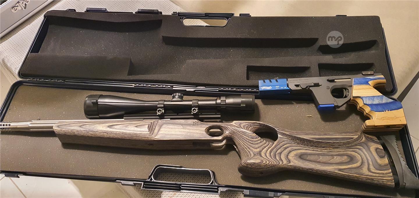 Included is the GSP Expert First Edition with original Walther aluminium case, the full .22 LR conversion kit in rifle configuration with laminated thumbhole stock and stainless precision barrel, as well as a mounted Bushnell Banner 3–9×50 scope (model 71-3950, waterproof, clear optics) and the corresponding Walther tools and small parts. All components belong together and are correctly matched; nothing has been mixed or replaced.