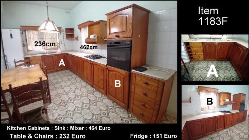( 1183F ) PINE KITCHEN CUPBOARDS WITH OPTIONAL TABLE ,,CHAIRS & FRIDGE FREEZER